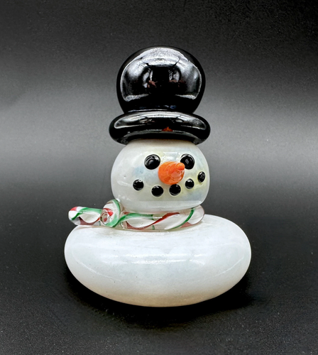 Hand Blown Glass Melting Snowmen - WHITE SCARF